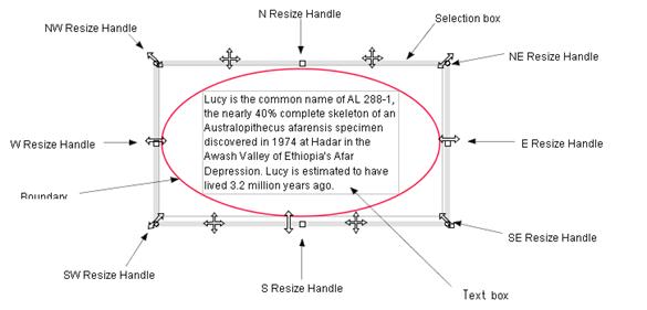 on the tool bar, and if you move the mouse to a shape's boundary to determine